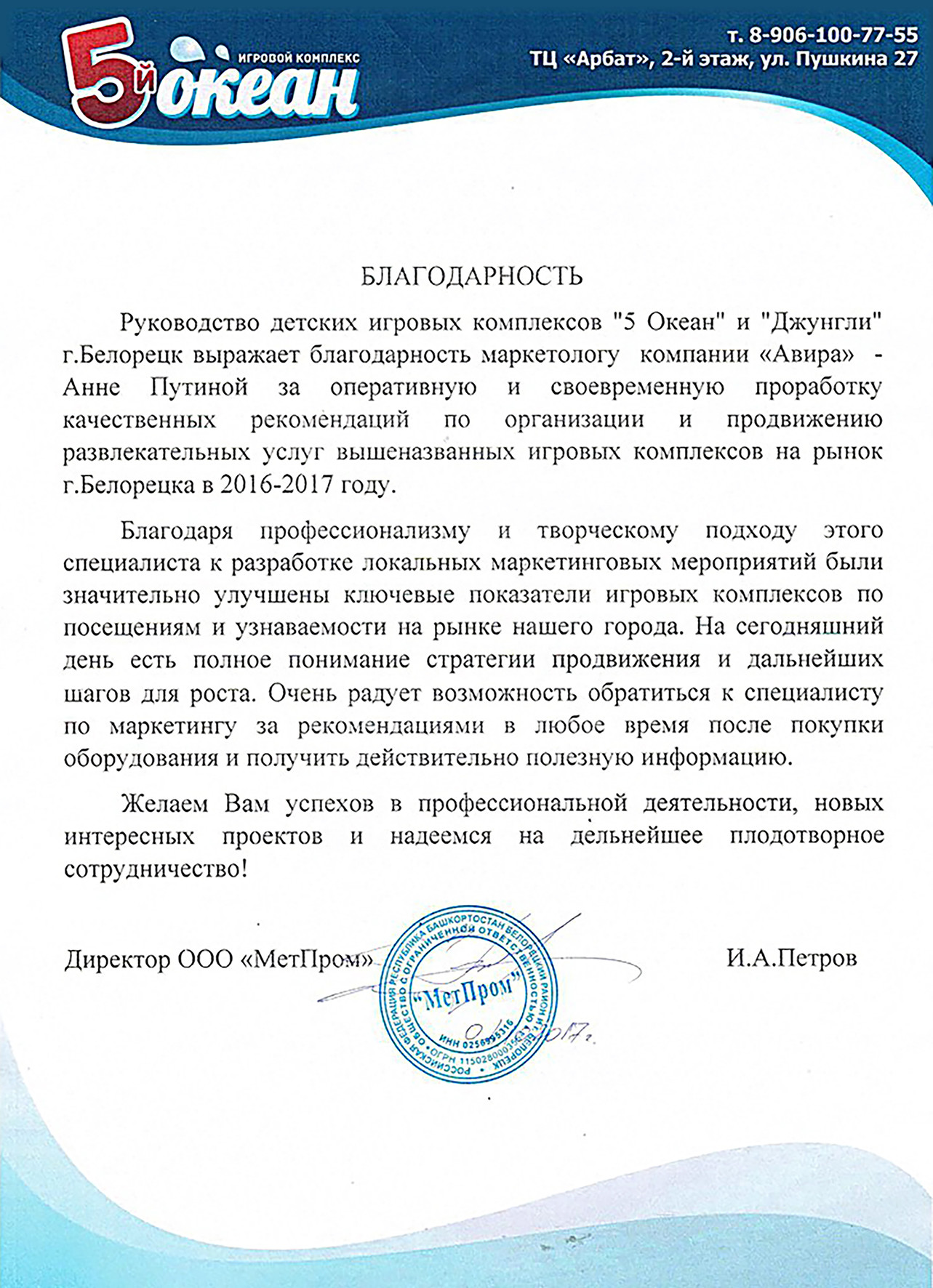 развлекательного центра на основе уникального опыта